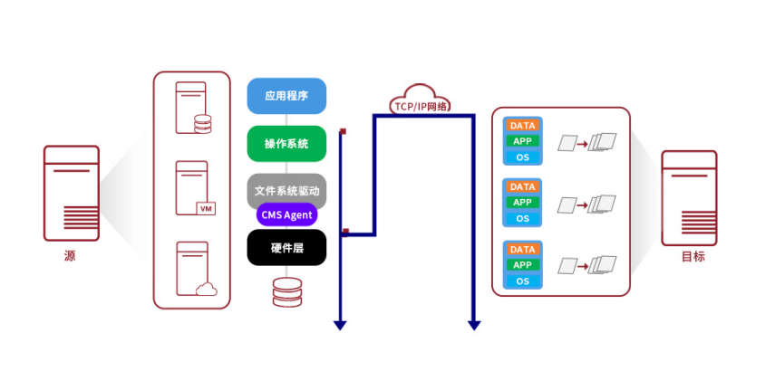 業(yè)務系統(tǒng)工作負載 (操作系統(tǒng)、應用程序、數據)一體化遷移至目標端。