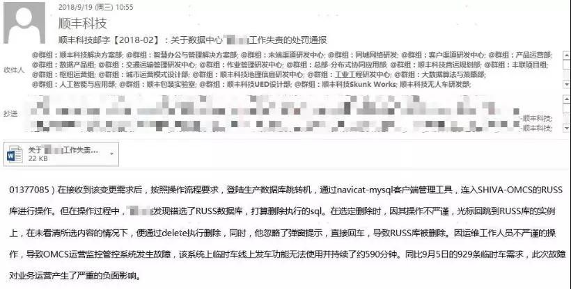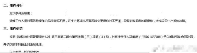 昨日,從順豐傳出來的這封郵件傳遍IT圈,簡(jiǎn)意是:一位高級(jí)運(yùn)維人員搞錯(cuò)了一條命令,誤刪了某個(gè)數(shù)據(jù)庫,數(shù)據(jù)無法恢復(fù),后果太嚴(yán)重了,順豐只好讓他被動(dòng)跑路。