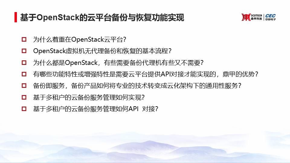 在上一次的分享當中呢,有不少的伙伴們問道,像我們的OpenStack云的服務化是怎么實現的,還有為什么有一些云環境下需要使用備份代理機,有一些又不需要,到底它們中間的區別在哪?所以我們這次就做了云時代容災備份管理的第二講。