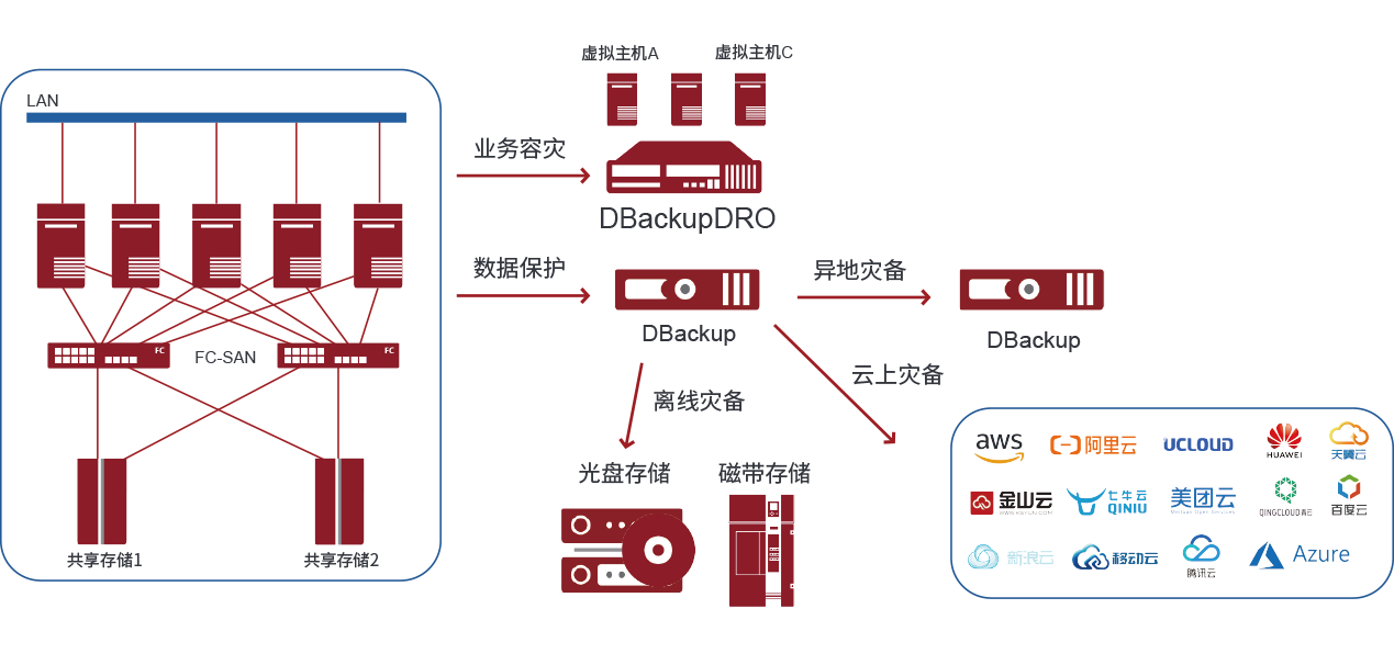 透過DBackup 可對(duì)生產(chǎn)數(shù)據(jù)進(jìn)行實(shí)時(shí)備份,支持完全備份、差異備份、增量備份、日志備份等多種備份策略,實(shí)現(xiàn)全備份恢復(fù)和單文件、單郵件等細(xì)粒度的數(shù)據(jù)歷史副本恢復(fù)。