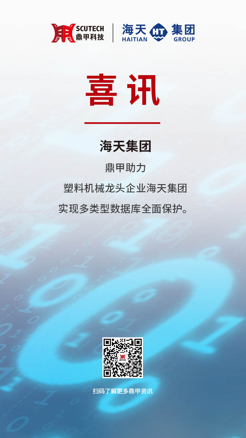 鼎甲助力塑料機械龍頭海天集團實現多類型數據庫全面保護!