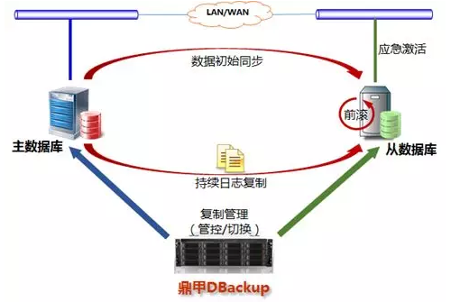 鼎甲DBackup對(duì)Oracle、SQL Server、MySQL、達(dá)夢(mèng)等數(shù)據(jù)庫(kù),構(gòu)建主/從數(shù)據(jù)庫(kù)環(huán)境,提供定時(shí)、準(zhǔn)實(shí)時(shí)的數(shù)據(jù)同步復(fù)制保護(hù)。當(dāng)主機(jī)數(shù)據(jù)庫(kù)發(fā)生故障時(shí),可在維護(hù)人員進(jìn)行故障確認(rèn)后,觸發(fā)主/從數(shù)據(jù)庫(kù)切換業(yè)務(wù),DBackup將自動(dòng)把將主庫(kù)變?yōu)閺膸?kù),從庫(kù)變?yōu)橹鲙?kù),保障業(yè)務(wù)的連續(xù)性。